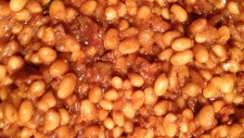 Combine: tomato juice, onion, ketchup, molasses, brown sugar, dry mustard, salt, black pepper and chili powder